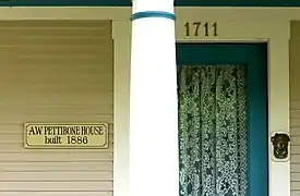 In June, 1861, Pettibone married Lucy B. Peabody[4] (in a later article, Flora Peabody[5]) . She was born in Cleveland, Ohio, lived in Whatcom, and died at Ripon in 1882. They had four children: Alice, married to a railroad constructor T. H. Bacon; Fred Curtis of Whatcom, married to Elizabeth E. Pettibone (Crickett); Will E. of Seattle; and Louis A. of St. Paul.[4][9] The Pettibones were one of the Peabody heirs, and in 1886, after a series of legal disputes over land in Bellingham, they built a family home in the heart of the city on Eldridge Avenue. The house was later named historic building.[5]