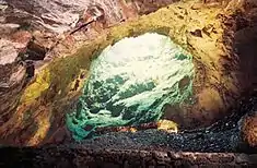 The Algar do Carvão (Cavern of Coal) is an ancient lava tube or volcanic vent located in the central part of the island of Terceira in the Portuguese archipelago of the Azores. It lies within the civil parish of Porto Judeu in the municipality of Angra do Heroísmo.