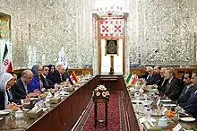 Larijani was one of the leaders of the Principlists Pervasive Coalition in 2008 parliamentary elections,[29] and a United Front of Principlists leader.[30] During Iranian 2016 parliamentary election Larijani was the leader of the Followers of Wilayat faction,[31] although he was backed by the reformist List of Hope and said he is running as an independent candidate.[32]