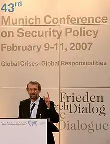 In 2005, Larijani was appointed the Supreme National Security Council secretary. This body helps draw up nuclear and other policies by Khamenei.[19] He replaced Hassan Rouhani in the post.[20] As a chief nuclear negotiator, Iranian analysts said he differed with the president over how to pursue negotiations with his European counterparts and say he backed a more pragmatic approach.