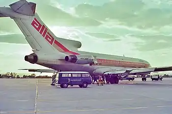 Alia Royal Jordanian Flight 600 was a scheduled passenger flight from Queen Alia International Airport, Jordan, to Seeb International Airport, Muscat, Oman, via Doha International Airport in Qatar. On 14 March 1979 it was being operated by a Boeing 727-2D3 jet airliner registered in Jordan as JY-ADU when, while carrying out a missed approach to Runway 34 at Doha at night, it flew into a thunderstorm, causing the aircraft to drop 750 feet (230 m) into the ground.[1] Sixty-four people were on board; of the 15 crew four died and two were seriously injured and 41 passengers were killed and six seriously injured; the aircraft was destroyed.[1]
