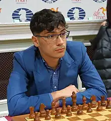 Firouzja won the gold medal in the U12 section at the Asian Youth Chess Championships held in 2015 in Suwon.[8][9] In adult tournaments, one of Firouzja's earliest successes was in the 10th Nana Aleksandria Cup in 2015, held in Georgia. In a strong field with 15 grandmasters, Firouzja finished with 5/9, including a victory against grandmaster Vugar Rasulov and four draws against four other grandmasters. He had further successes in the Iranian chess championship semi-final, an unbeaten 7/9 (+5-0=4), which served as a qualifier to the main championship held the following year. He then took part in the strongest open tournament held that year, the Qatar Masters 2015, in which he scored 4½/9, including victories against grandmasters Pavel Tregubov and Neelotpal Das.