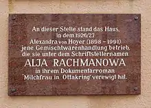 - ↑ Heinrich Riggenbach (2010). "Der Nachlass von Alja Rachmanowa (Galina von Hoyer) in der Kantonsbibliothek Thurgau" (PDF). Kantonsbibliothek Thurgau. p. 5. Retrieved 2022-09-13.