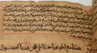 Ibn al-Maṭrān cites both Allīnūs's commentaries on the Isagoge[10] and the Categories.[11] Ibn al-Ṭayyib also cites Allīnūs in his own commentaries on the Isagoge[12] and the Categories.[13] According to Ibn Riḍwān, Allīnūs criticized Aristotle in his comments on the fifth section of the Hermeneutics.[3] Three quotations from Allīnūs are found in the Kitāb al-Saʿdāh wa-l-isʿād of Abu ʾl-Ḥasan ibn Abī Dharr.[14] The manuscript Paris, Bibliothèque nationale de France, Ar. 2346, a copy of Ibn al-Khammār, contains marginal glosses by Allīnūs that seem to come from a different work than the Arrangement.[15][5] Several further glosses either quoting or paraphrasing Allīnūs are included in the Arabic critical editions of Aristotle and the Isagoge by the Egyptian philosophers ʿAbd al-Raḥmān Badawī and Aḥmad Fuʾād al-Ahwānī, respectively.[16]