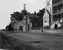 A 1914 image of St Ann's Industrial School (part of All Hallows' School). Road level of Ann Street, Brisbane, has been lowered on numerous occasions since 1861 and this has affected the proportions of the current gate.