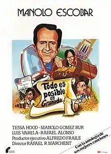 All Is Possible in Granada (Spanish: Todo es posible en Granada) is a 1982 Spanish musical comedy film directed by Rafael Romero Marchent and starring Manolo Escobar, Tessa Hood and Manolo Gómez Bur.[1] The film's sets were designed by the art director Luis Vázquez. It is a remake of the 1954 film of the same name.