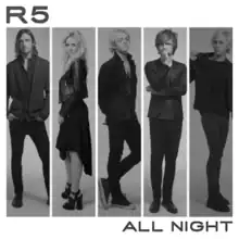 "All Night" is a pop rock[1] and power pop[2] song by American pop rock band R5. It was released on June 2, 2015, as the third single from Sometime Last Night, along with the album's iTunes pre-order. The song was announced on May 28 as the album's opening track.[3]