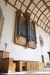 The two manual organ was built in 1937 by Henry Willis II of Henry Willis & Sons. The pipes are positioned in an elevated case on the north wall of the chancel, exploiting the building's excellent acoustic. The case was designed by Dykes Bower, with the 16 ft Open Diapason pipes on display.[22] Its specification can be found on the church's official website (see external links).