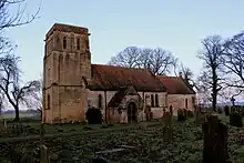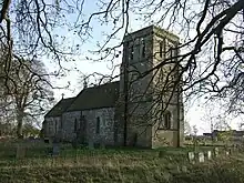 The church is built of sandstone and gritstone, with a tile roof. The nave is of four bays, and the chancel of three. The tower has three stages and full-height buttresses. There is a parapet, with gargoyles in the form of animal heads. Built into the porch is a slab which depicts the head and feet of a priest. Inside, there is a small figure with a missing head, and an 18th century memorial showing a figure on a bier.[3]