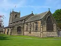 The church is built on the site of a Roman fort, two Roman altars have been discovered in 1925 built into the tower. Three 8th-century Anglo-Saxon stone crosses, now incomplete, used to be in the churchyard but are now inside, below the tower. The earliest part of the church is the 13th century south doorway. The nave of the church dates back to the 14th century while the tower is of 15th century construction. The church was extended and restored between 1860 and 1861 by Bradford architects Mallinson & Healey. The vestry was extended in 1927 which was subsequently converted into a war memorial chapel following the Second World War. The church was grade II* listed on 18 July 1949.[1]