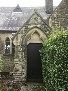 The building cost £2,000,[4] and was built on a field purchased from the Chapter of Winchester. It was designed to accommodate 120 boys. When it was opened, it was described as comprising a master's house and a schoolroom. The schoolroom measured 52′ 6′′ by 18′. The exterior stone was from the Moss Valley quarries. It also incorporated ornamental bricks and plain varnished woodwork. The architect was Edward Jones, the diocesan surveyor. The building contractor was Benjamin Owen of Chester. On Monday 12 October 1874, the school was opened by the Bishop of St Asaph. He made a speech about the school's architecture and his predecessor.[1] On 3 June 1996, the building became Grade II listed as an example of Gothic revival style architecture.[4][5]
