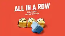 The play starred Charlie Brooks, Simon Lipkin, Michael Fox, and Hugh Purves, and was produced by Paul Virides Productions at the Southwark Playhouse.[2] An early draft of All in a Row was long-listed for the Bruntwood Prize for Playwriting,[3] and the play was chosen as one of the Bolton Octagon Theatre's Top Five in 2017.[4] It was published by Methuen Drama in 2019.[5]