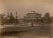 The original rustic wooden structures were replaced in 1879 with a new three-storey pavilion to be used for concerts, gala balls, conventions, and flower shows.[3][2][5] Construction of the new pavilion was financed through a C$20,000 mortgage taken out from the horticultural society.[3] Because the horticultural society was unable to cover their debts, the conservatory was later sold to the municipal government in 1888.[3] In the following year, iron fencing and gates were added to the park.[4]
