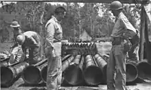 The first unit of the Second Australian Imperial Force (AIF) to arrive, the 2/3rd Light Anti-Aircraft Battery, disembarked on 11 April 1942, having returned to Australia from the Middle East just four weeks before. The US 101st Coast Artillery (Anti-Aircraft) Battalion followed on 5 May, and its commander, Lieutenant Colonel Joseph B. Fraser, took charge of Port Moresby's anti-aircraft defences.[31][32] Morris's command became New Guinea Force on 15 April.[33] By the end of June the ground forces in New Guinea consisted of 1,098 AIF, 12,273 Militia and 2,208 American troops.[34]