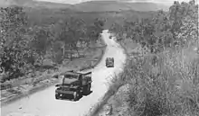 Owers' Corner was named after Lieutenant Noel Owers, who was given the task of surveying a new route from Ilolo to Nauro. The project of constructing a jeep track to Nauro was pushed aggressively by the Chief Engineer at New Guinea Force, Brigadier John Main. Lieutenant Colonel Sidney Bleechmore was placed in charge, and was given the 7th and 2/14th Field Companies and a section of the 2/1st Mechanical Equipment Company.[103][104] Work commenced on 19 August. Removing the trees allowed the sun to dry out the ground, and by adding drainage, a track was created passable by light vehicles, allowing plant and equipment to be brought up. Owers' Corner was reached in early September.[104]