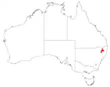 This sheoak grows in low open woodland between Emmaville, Guyra and Moredun, on the western edge of the Northern Tablelands of New South Wales.[2][3]