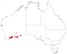 Allocasuarina scleroclada grows in scrub and low woodland, on rocky hillsides and on limestone shelves near the sea. It occurs in scattered places along the coast of Western Australia between Borden and the western part of the Great Australian Bight in the Coolgardie, Esperance Plains and Mallee bioregions of southern Western Australia.[2][3]