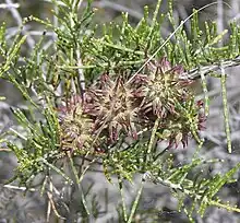 Allocasuarina thuyoides, commonly known as horned sheoak,[2] is a species of flowering plant in the family Casuarinaceae and is endemic to the south-west of Western Australia. It is monoecious or dioecious shrub that has its leaves reduced to scales in whorls of five or six, the mature fruiting cones 8–20 mm (0.31–0.79 in) long containing winged seeds usually 5.0–6.0 mm (0.20–0.24 in) long.