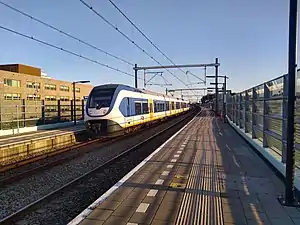 Almere Poort is a railway station in Almere, Netherlands. It is located on the Flevolijn. It replaced Almere Strand railway station as the city's sixth railway station.