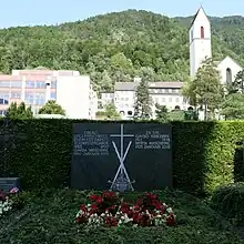 The grave of Hirschbühl, his wife and their children Claudio (1912–1978) and Myrta (1925–2018) at the Hof cemetery in Chur.