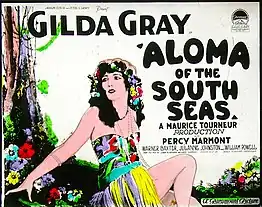 Aloma of the South Seas is a lost 1926 American silent comedy drama film starring Gilda Gray as an erotic dancer, filmed in Puerto Rico and Bermuda, and based on a 1925 play of the same title by John B. Hymer and LeRoy Clemens.[4][5]
