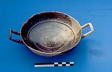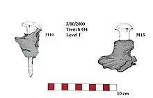 The bulk of the amphoras come from Mende and Skopelos, ancient Peparethos,[3] and a smaller number originated at Ikos, Chios, and Kerkyra. All artifacts, including amphoras, cups, and bowls, date to the late fifth century BC.[4]