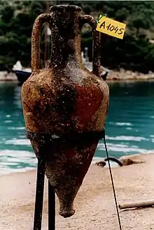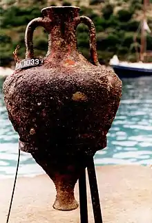 - ↑ Wilford, John Noble (1993-04-13). "Ancient Greek Shipwreck Found; Cargo Was Fine Wine". The New York Times. ISSN 0362-4331. Retrieved 2020-04-29.