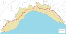 The Alta Via dei Monti Liguri (AV, literally "High Route of the Ligurian Mountains") is a long-distance waymarked hiking trail in the Italian region of Liguria. In about 440 kilometres (270 mi) and 44 day hikes,[1] it runs through the arc formed by Ligurian Alps and Ligurian Apennines from Ventimiglia (IM, in the westernmost part of the region) to Ceparana (Bolano, SP, on its east side).