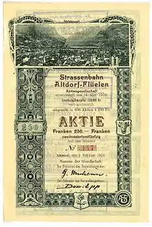 Share of the Strassenbahn Altdorf-Flüelen AG, issued 1. February 1906