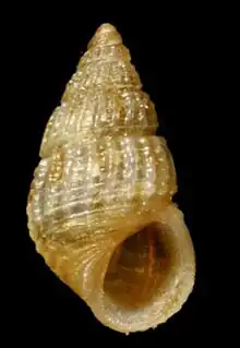 Shell of Alvania ogasawarana (specimen at the Natural History Museum, Rotterdam)