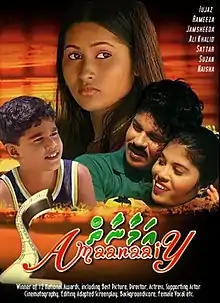 Amaanaaiy is a 1998 Maldivian romantic drama film directed by Mahdi Ahmed. Produced by Mohamed Niyaz under Eternal Pictures, the film stars Ali Khalid, Fathimath Rameeza, Jamsheedha Ahmed and Iujaz Hafiz in pivotal roles.[1] The film was released on 4 November 1998.[2] The film revolves around a man who is welcomed with his illegitimate son after the child's mother's death and the events that proceed when his wife is not fond of the child.[3][4]