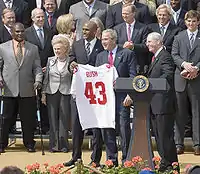 - 1 2 Office of the Press Secretary (April 30, 2008). "President Bush Welcomes Super Bowl XLII Champion New York Giants to White House". The White House. Retrieved April 30, 2008.