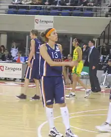 She made her debut with Spain women's national basketball team at the age of 17. She played with the senior team for 18 years, from 1995 to 2013. She is one of the most capped players with a total of 258 caps and 10.6 PPG.[2] She participated in two Olympic Games (Athens 2004 and Beijing 2008),[3] four World Championships and eight European Championships, retiring from the national team as captain and champion in the 2013 EuroBasket: