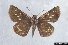 Amblyscirtes carolina, the Carolina roadside skipper, is a species of butterfly in the family Hesperiidae. It is found from south-eastern Virginia, south to South Carolina, west to northern Mississippi. There are disjunct populations in Delaware, southern Illinois and northwest Arkansas.