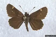 - ↑ "Common Roadside-Skipper Amblyscirtes vialis (W.H. Edwards, 1862) | Butterflies and Moths of North America".