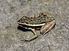 1. IUCN SSC Amphibian Specialist Group (2014). "Ameerega berohoka". The IUCN Red List of Threatened Species. IUCN. 2014: e.T45727636A45727639. doi:10.2305/IUCN.UK.2014-1.RLTS.T45727636A45727639.en. Retrieved 5 January 2018.