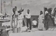 The "lost evidence" in question was a photograph found in the National Archives at College Park of Jaluit Atoll in the South Seas Mandate, the Japanese mandate for the Marshall Islands. The photograph includes two European-looking people. The documentary, through a forensic analyst who specialized in facial recognition, posited that it was "very likely" to be a picture of a captured Earhart and Noonan.[1] The Lost Evidence also says that a barge in the background might possibly contain a plane, and that plane might possibly have been the Electra.[2] The photograph was from the Office of Naval Intelligence (ONI) and prepared for the 1944 invasion of the Marshall Islands during World War II. The documentary suggested that a ship seen in the background flying a Japanese flag might be the Kōshū Maru, a Japanese military naval vessel, that would have been involved in transporting the captives. It suggests that perhaps the Kōshū Maru transported them to Saipan, where they died in custody. The documentary also cited existing evidence for the Japanese capture hypothesis, such as locals who claimed to have witnessed a plane crash at Mili Atoll.[3] It also suggested that the US government might have known about the capture and covered this knowledge up.[2]