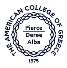 Pierce was founded in Smyrna (modern day İzmir) in 1875. It was initially situated in Palaio Faliro, a suburb in the southern Athens and later on in Elliniko, in the area where the old Athens Airport was.[15] In 1963 it moved to Aghia Paraskevi suburb in north-eastern Athens. The school was for girls only until 1982 when it became co-educational. Until 2021 it had only a gymnasium & lyceum, based in Aghia Paraskevi. From 2022, a new campus opened in Spata and it currently houses Pre-K to 12 Grade.[16] As of November 2022 the school is accredited by Middle States Association – Commissions on Elementary and Secondary Schools, MSA-CESS.[17] As of Fall 2023, it enrolls approximately 2.000 students.