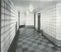 In 1976, the building was still entirely as originally built, except for an entrance canopy and a flight of steps.[1] By 1984, some of the glass blocks were being replaced by solid panels and stucco, even though block was reportedly just coming back into fashion.[5][25] A local architect attested at the time that the building was "tremendously sound", as much as when it was built.[8]