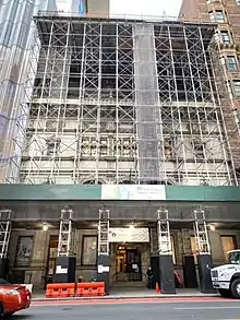 A temporary construction shed was erected around the Art Students League Building during the tower's construction.[15][81] In 2018, the Art Students League held a "house party" in the building, marking the first time in 75 years that the building had been opened to the general public.[82] The construction shed remained until 2021, when work on Central Park Tower was completed.[83]
