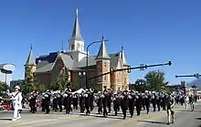 In 2008, the American Fork High School Marching Band traveled to Indianapolis, Indiana for the Bands of America Grand National Championships. They made it to the semifinals and placed 14th out of nearly 90 bands.[18] At the 2009 Grand National Competition, the American Fork Marching Band was presented with the Esprit de Corps award. They also placed 15th in the nation when they competed in one of the most competitive years Grand Nationals has ever seen. In 2010, American Fork was one of the three recipients of the Sudler Shield.[19] In 2013, the band took 17th place in the Bands of America Grand National Championships.[20] The band went to grand nationals once again in 2018 after a 5-year break from the competition. They placed 16th and less than 1.05 points away from finals while competing in a very competitive semi-finals competition. In 2020, amidst the COVID-19 pandemic, the band participated in the V-USBands program, and won 1st place in Division 4 at the National Championships.[21] The band traveled to Bands Of America's Grand Nationals again in 2022 and placed 13th overall, their highest placement ever, only 0.4 points away from finals.
