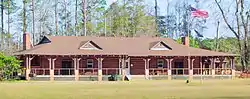 The American Legion Hut (Decatur, Mississippi), also known as the Newton County American Legion Post No. 89 Hut, was built in 1934. With 24 acres (9.7 ha), it was listed on the U.S. National Register of Historic Places in 2007. It is significant for its Rustic style architecture as applied in Mississippi, which includes use of horizontal log walls, exposed rafters and trusses, and stone fireplaces.[2]