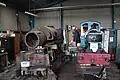 There is the main 3 road running shed housing majority of the locomotives, operational and stored, a large workshop next door where restoration and maintenance take place, then a small covered siding is located between the workshop and carriage shed.
