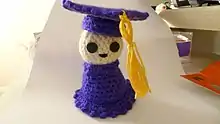 Amigurumi (Japanese: 編みぐるみ, lit. "crocheted or knitted stuffed toy") is the Japanese art of knitting or crocheting small, stuffed yarn creatures. The word is a compound of the Japanese words 編み ami, meaning "crocheted or knitted", and 包み kurumi, literally "wrapping", as in 縫い包み nuigurumi "(sewn) stuffed doll".[1] Amigurumi vary in size and there are no restrictions about size or look.[2] While the art of amigurumi has been known in Japan for several decades, the craft first started appealing to the masses in other countries, especially in the West, in 2003.[3] By 2006, amigurumi were reported to be some of the most popular items on Etsy, an online craft marketplace, where they typically sold for $10 to $100.[3]