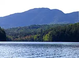 Ampersand Mountain is a 3,352 ft (1,021.7 m) mountain in Franklin County in the High Peaks Wilderness Area of the northeastern Adirondacks, west of the High Peaks proper in New York State. The trail up the mountain begins on New York State Route 3 8.1 miles (13.0 km) southwest of the village of Saranac Lake, near Middle Saranac Lake; it is a popular day hike. The mountain takes its name from nearby Ampersand Creek, so named because it twists and turns like the ampersand symbol.[4] The summit is bare rock, with extensive views of the High Peaks to the east and the Saranac Lakes to the west. Stony Creek Mountain is located west-southwest of Ampersand Mountain. The mountain is notable as the land surrounding its hiking trail's initial ascent is generally acknowledged as unlogged old growth forest. [5] [6]