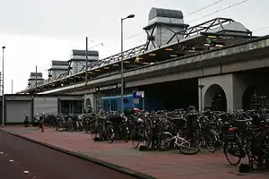 Amsterdam Lelylaan is a railway, metro, tram and bus station in west Amsterdam. It is served by trains of the Nederlandse Spoorwegen and metros of the GVB. The station opened on 1 June 1986. It is located on the Amsterdam-Schiphol railway, a few km south of Amsterdam Sloterdijk railway station. South of this station, trains turn west towards Schiphol railway station, while metros turn east towards Amsterdam Zuid railway station. The station is located in the Amsterdam borough of Slotervaart, on a long viaduct spanning three roads.