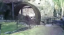 The Waterwheel used for electric power at Aberdulais in 2007 (spokes blurred out)