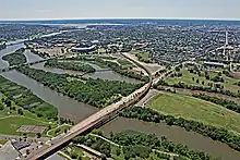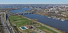 The Bladensburg Waterfront Park, part of the Prince George's County Department of Parks and Recreation, currently occupies the banks of the Anacostia near Alternate Route 1.[25] The Port Towns Community Boathouse at the park is home to public boat and bike rentals, a public boat ramp and dock, as well as the rowing crews of the University of Maryland, The Catholic University of America, a community rowing school, and several local high schools.[26]