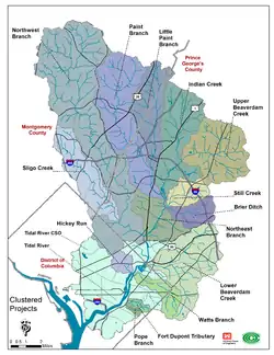 Under a stormwater discharge permit issued by the U.S. Environmental Protection Agency (EPA), the D.C. government is implementing a stormwater management program to improve water quality in the Anacostia.[10] The governments of Montgomery County and Prince George's County also operate stormwater management programs.[11][12]