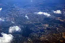 Aerial view of Southeast DC in 2009 showing the progress of the Anacostia River